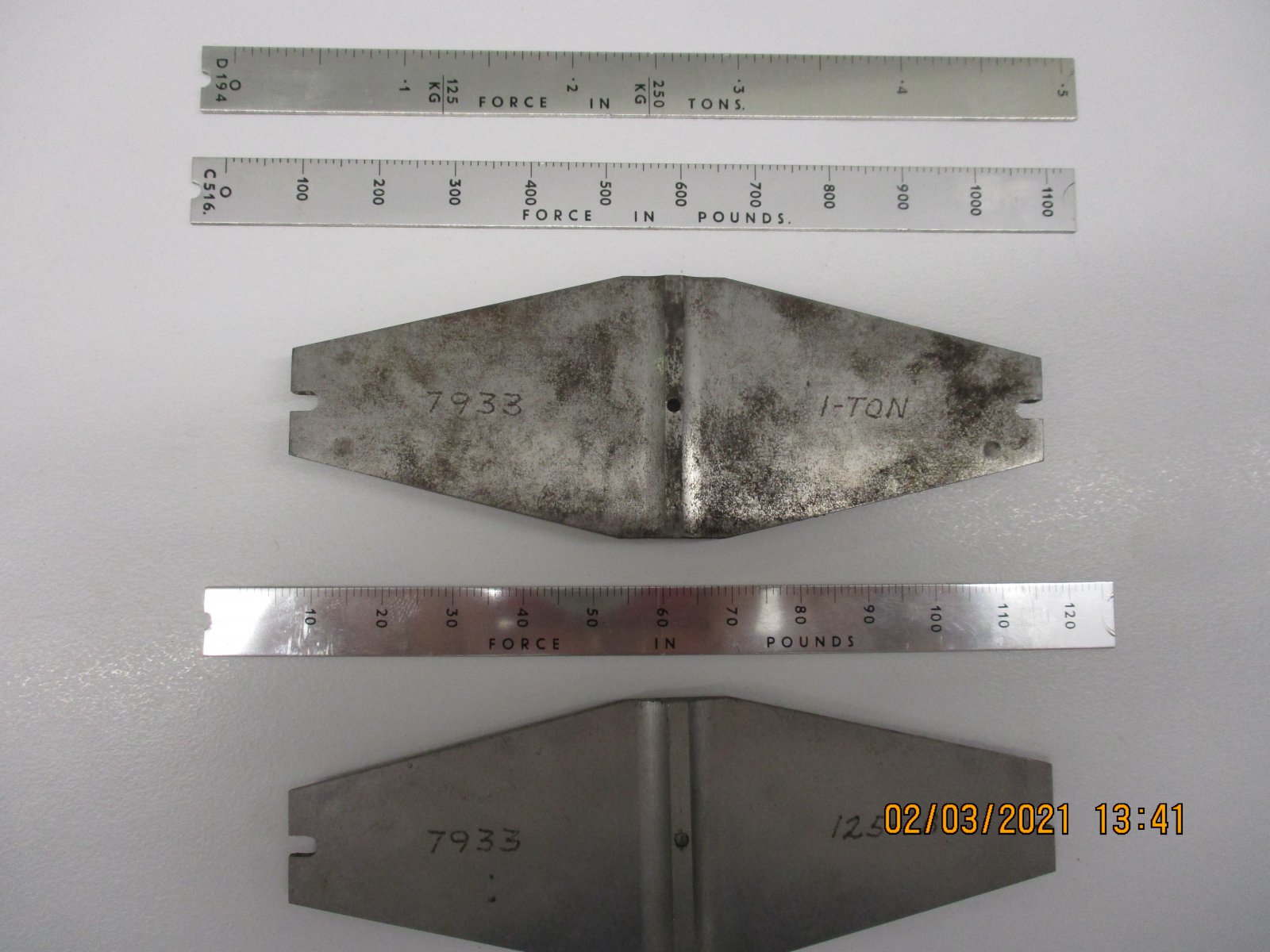 A corresponding scale for each sample is provided to be placed in the testing machine.